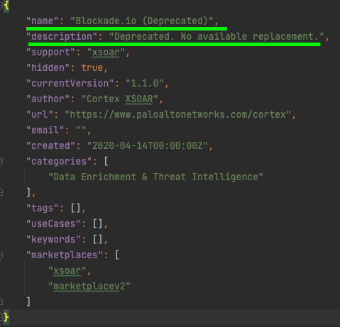 demisto-sdk format -i Packs/<pack-name>/pack_metadata.json -donly if all the pack's integrations, scripts and playbooks are deprecated. - Add to the name of the pack in the